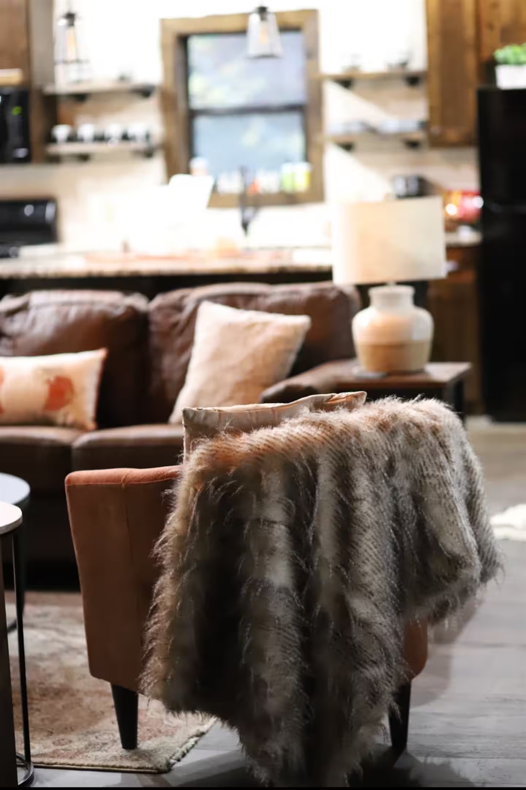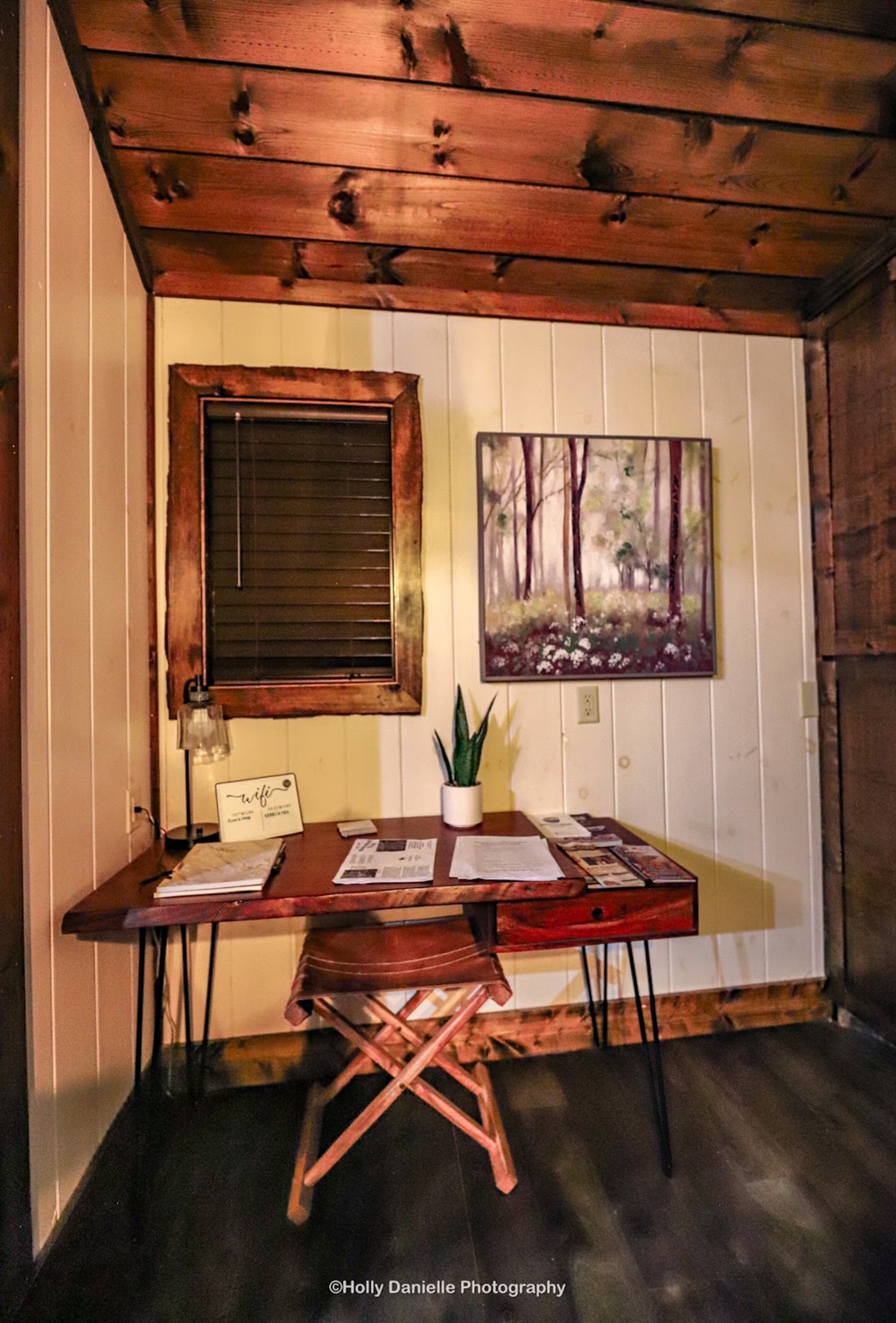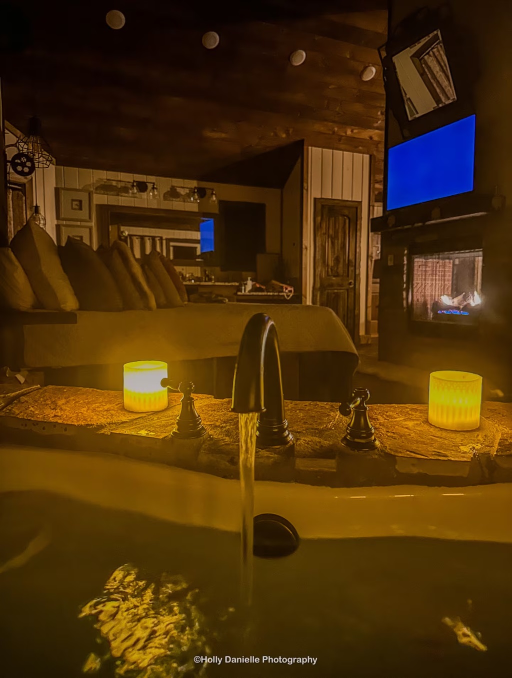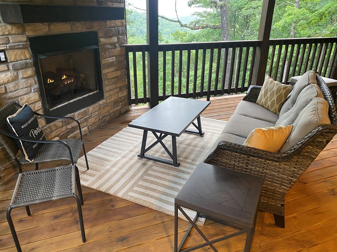 1 Bedroom • 1 Bathroom 1 Bath • Sleeps 1-4Built in 2023, this romantic couples’ retreat near the Buffalo National River and the town of Jasper, AR, offers gorgeous mountain views of the Ozarks. The cozy cabin features an open studio concept with a see-through gas fireplace, a custom rock tub with a mountain mural surround, and beautiful furnishings. The king-size custom platform bed is made from 100+-year-old barn wood. The cabin also includes a private toilet room and a gorgeous dual-fixture ceramic tile shower with sparkling glass tile accents. A stackable washer and dryer are located next to the fully stocked kitchen, and there is even a desk for any unexpected work duties!