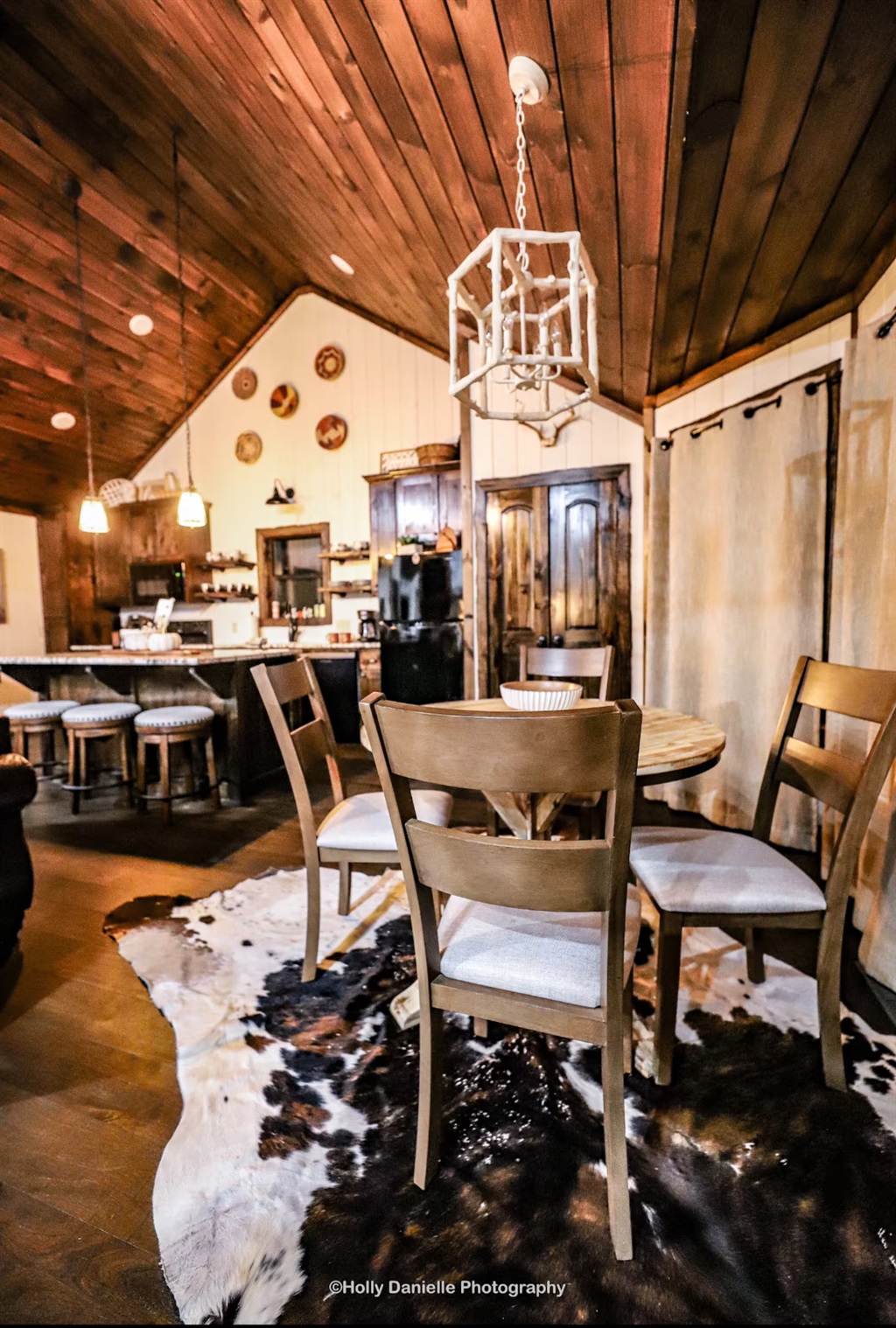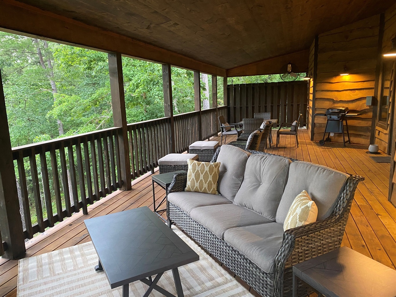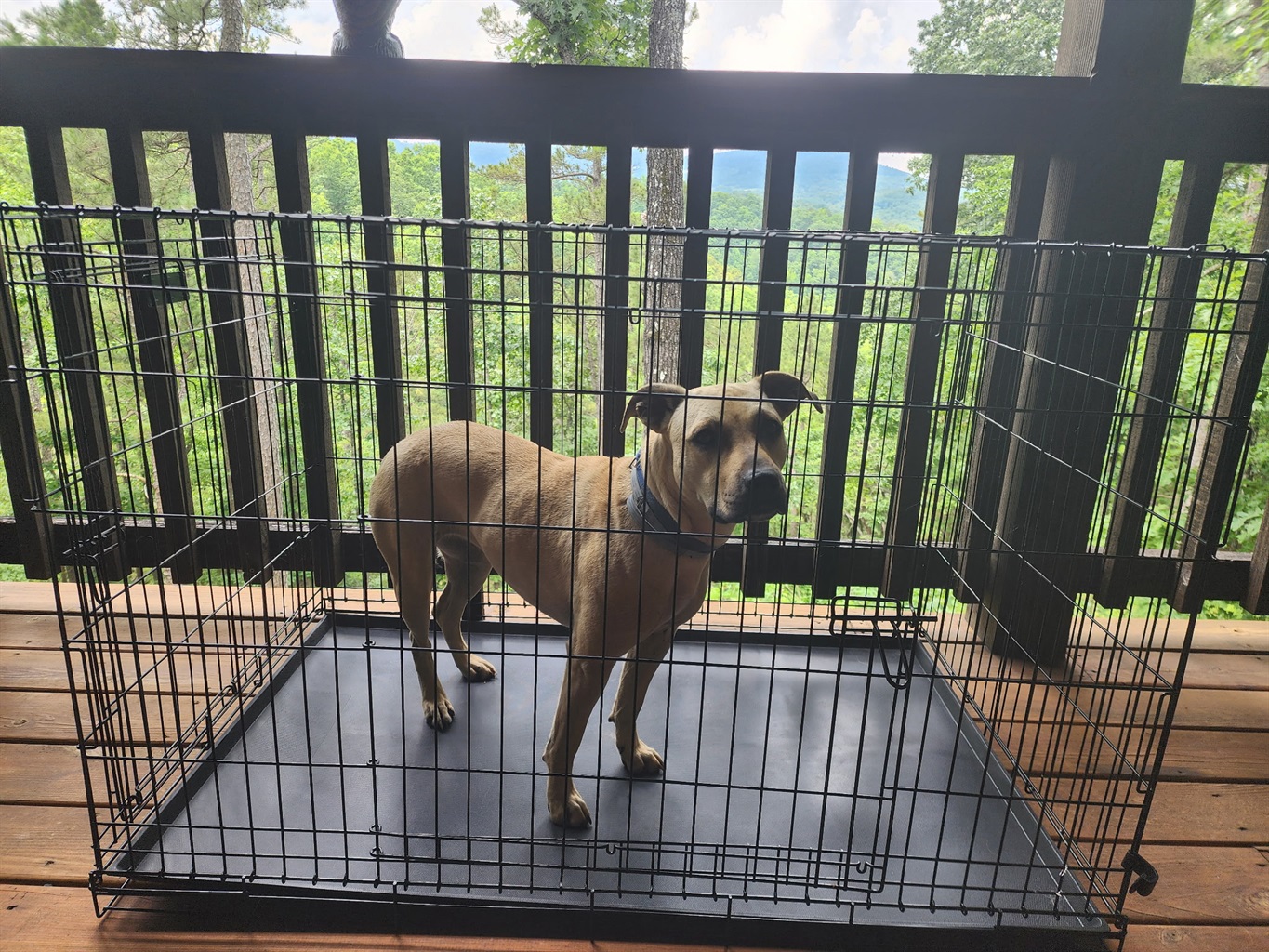 There is a pull-out sofa in the family room, allowing for a maximum of four guests. Dogs up to 40 pounds are allowed with a $100 non-refundable fee. A pet crate has been provided on-site and its use is required when renters leave the cabin. Cats are not permitted.